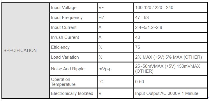 +5V | +8V | +12V | +24V | +48V | -5V | -12V | ||||||