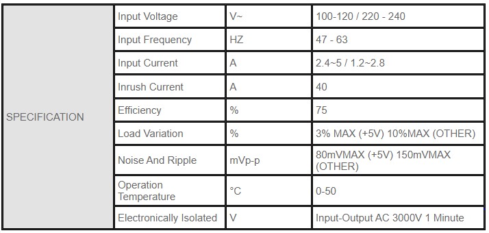 +5V | +8V | +12V | +24V | +48V | -5V | -12V | ||||||