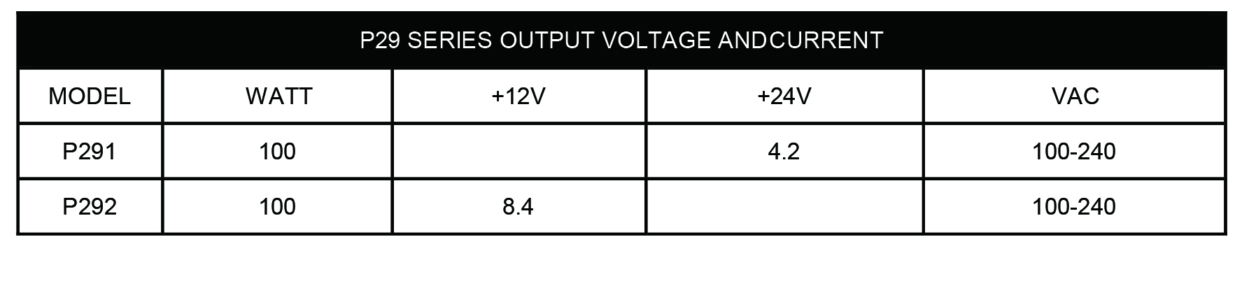 P291 | 100-240V | 4.2A | ● | |||||||||